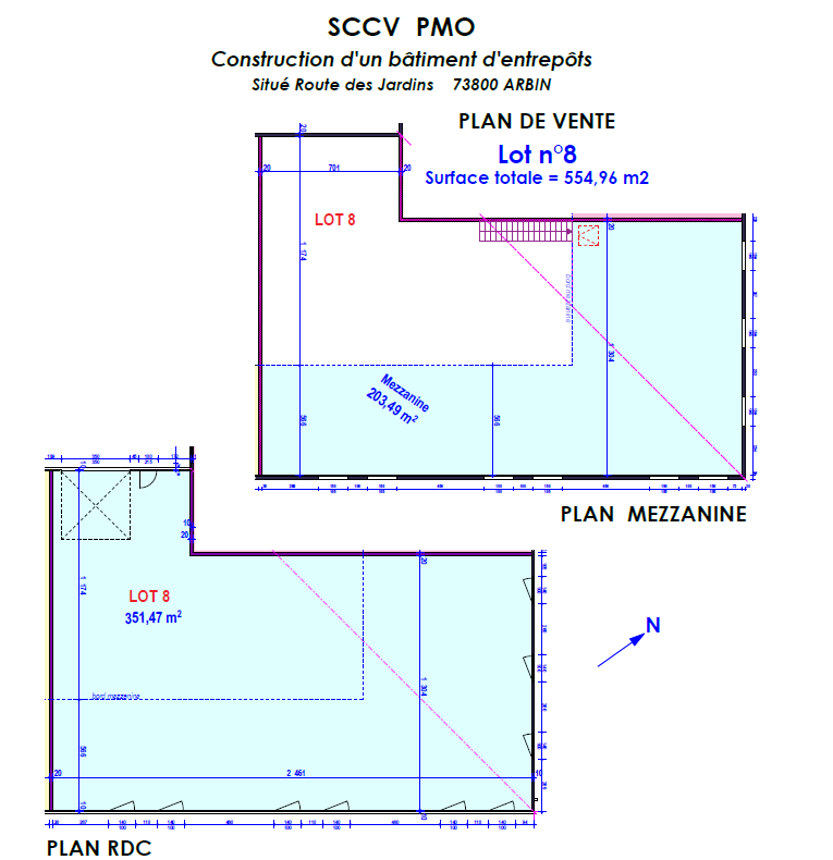 - Local d’activité de 554 m²de surface totale se décomposant comme suit : 351 m² en RDC + 203 m² en mezzanine